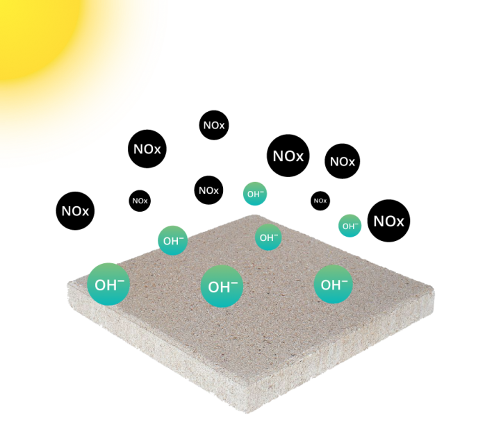 ProClean Air agit comme un catalyseur, en utilisant l’énergie du soleil. Les polluants se divisent et se transforment en nitrates inoffensifs et fertilisent le sol.