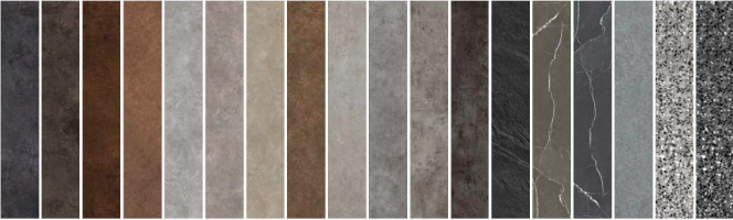 Choisissez parmi 18 textures de matériaux et 18 couleurs unies pour vous adapter parfaitement au contexte urbain.