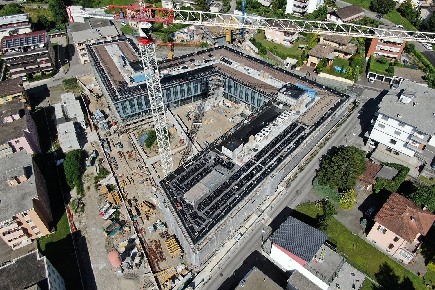 Le bâtiment multifonctionnel à “impact énergétique nul” possède la plus grande façade BIPV (Building Integrated Photovoltaic) du Tessin et abrite : - une résidence médicalisée pour personnes âgées de 114 lits ; - un centre de jour pour les patients atteints de démence sénile ; - le nouveau siège du Service municipal d’aide sociale (SAS) ; - un jardin d’enfants.