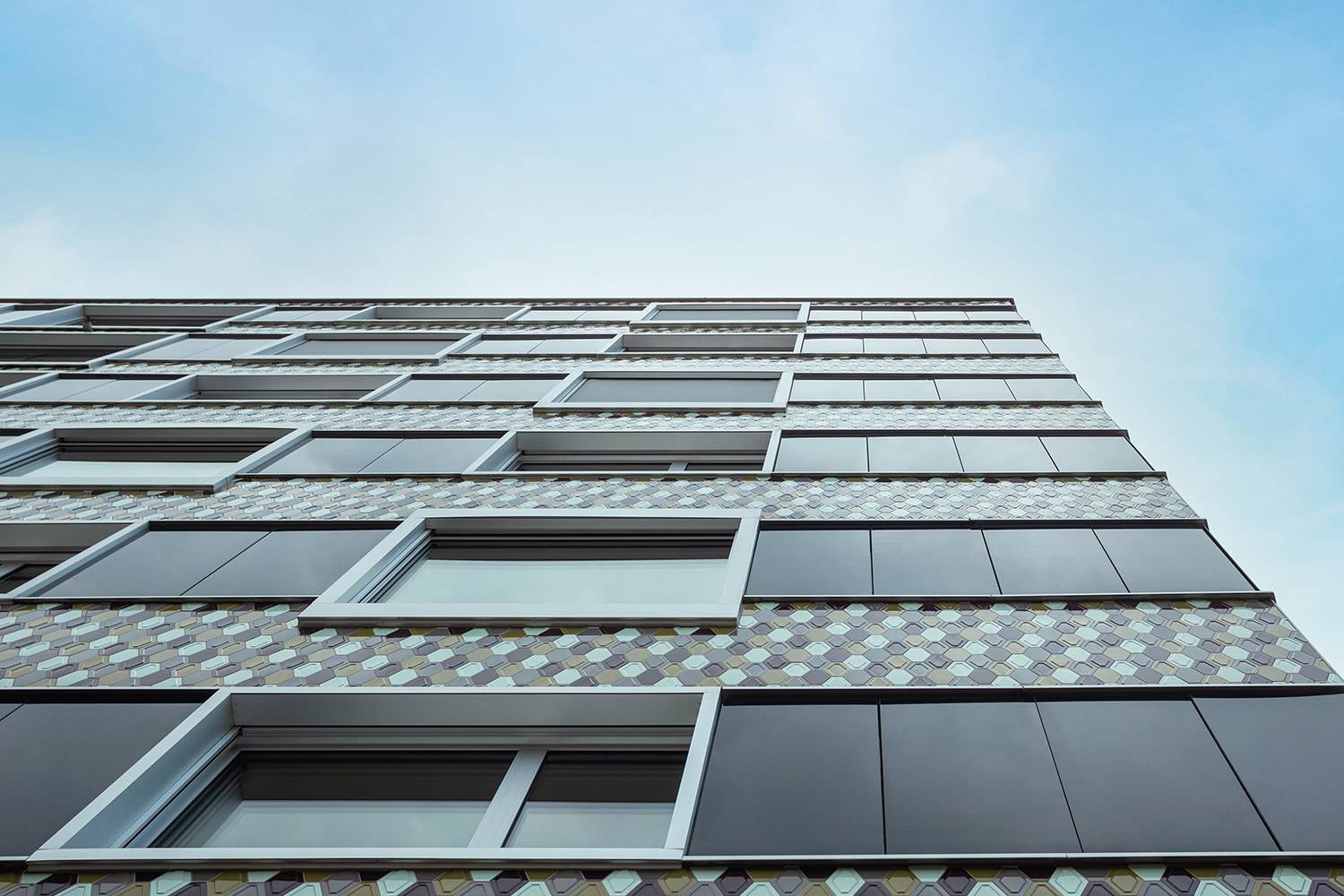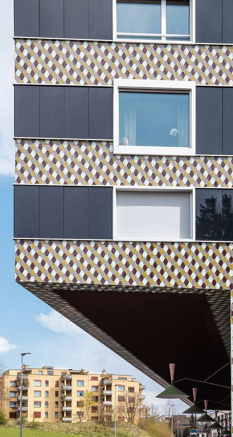 Le nouveau bâtiment de 8 étages de Kloten Milano comprend 65 appartements et 650 m2 d’espace commercial. Dans ce projet, les modules BIPV innovants ont été soigneusement étudiés pour s’intégrer parfaitement aux éléments traditionnels tels que la céramique, ce qui donne à la façade une vision plus dynamique.