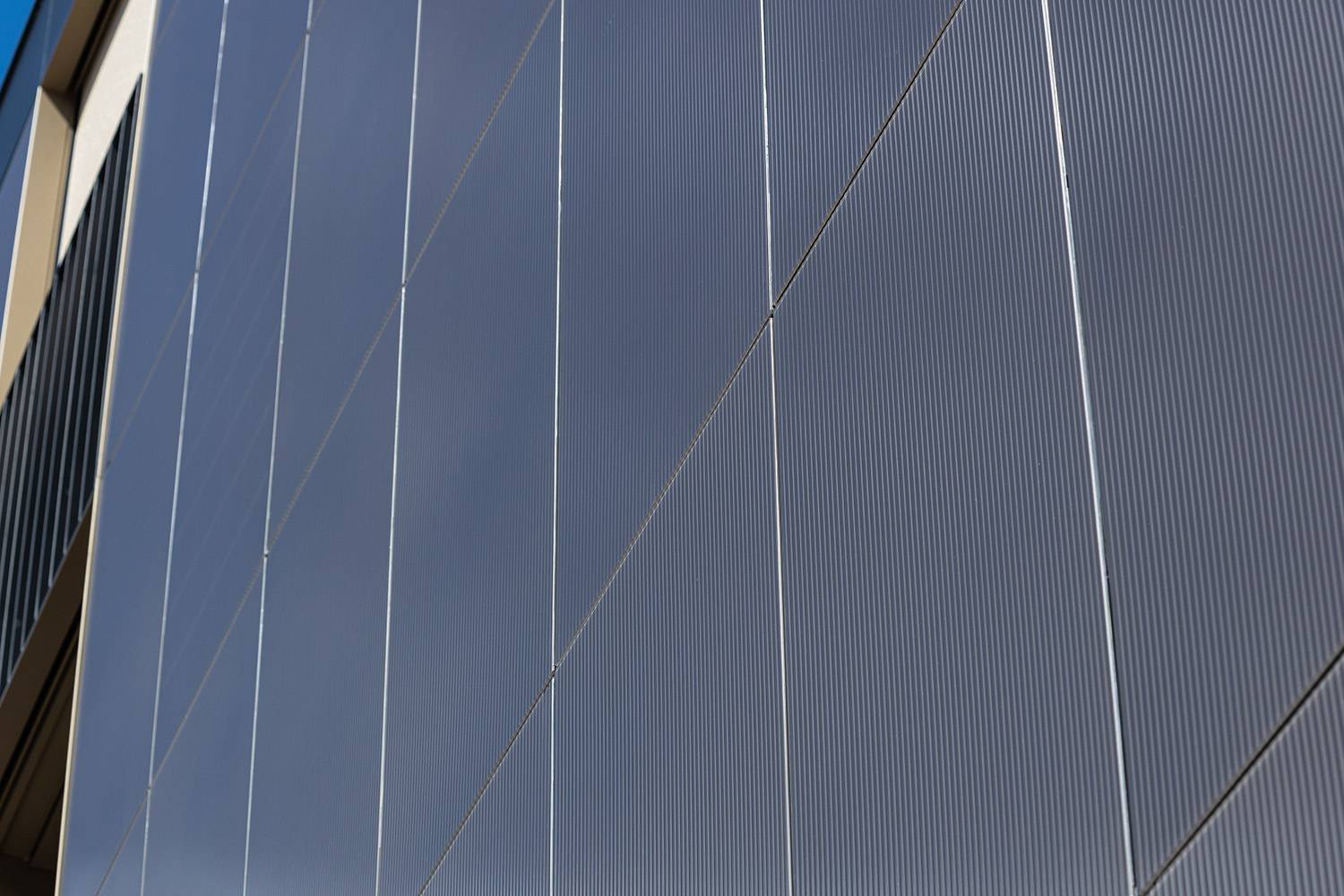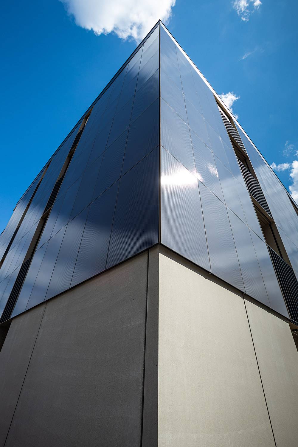 Il s’agit d’un projet de Tobler Litscher GmbH. Le bâtiment est caractérisé par les modules BIPV en verre structuré brun sur la façade et comprend également un toit solaire gris personnalisé composé de modules BIPV en verre structuré.